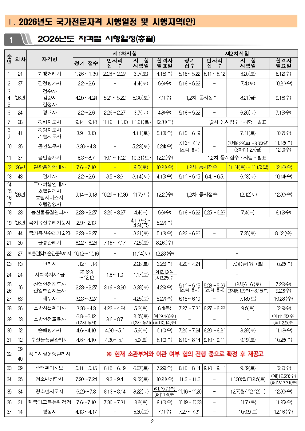 2026년도 국가자격시험 시행일정 사전공고