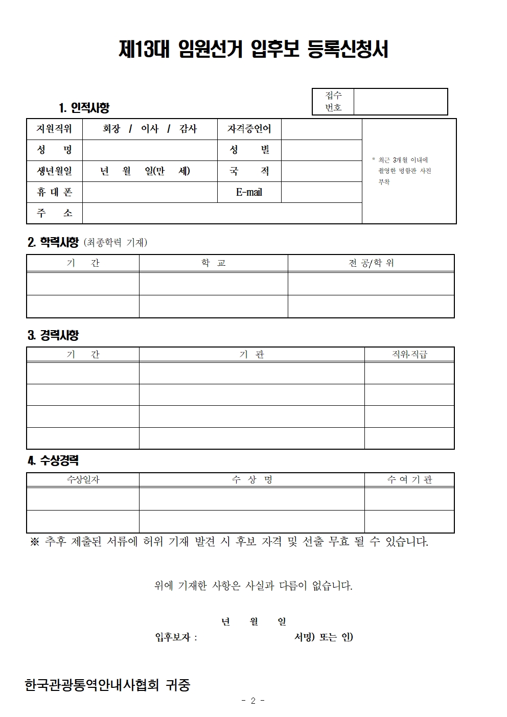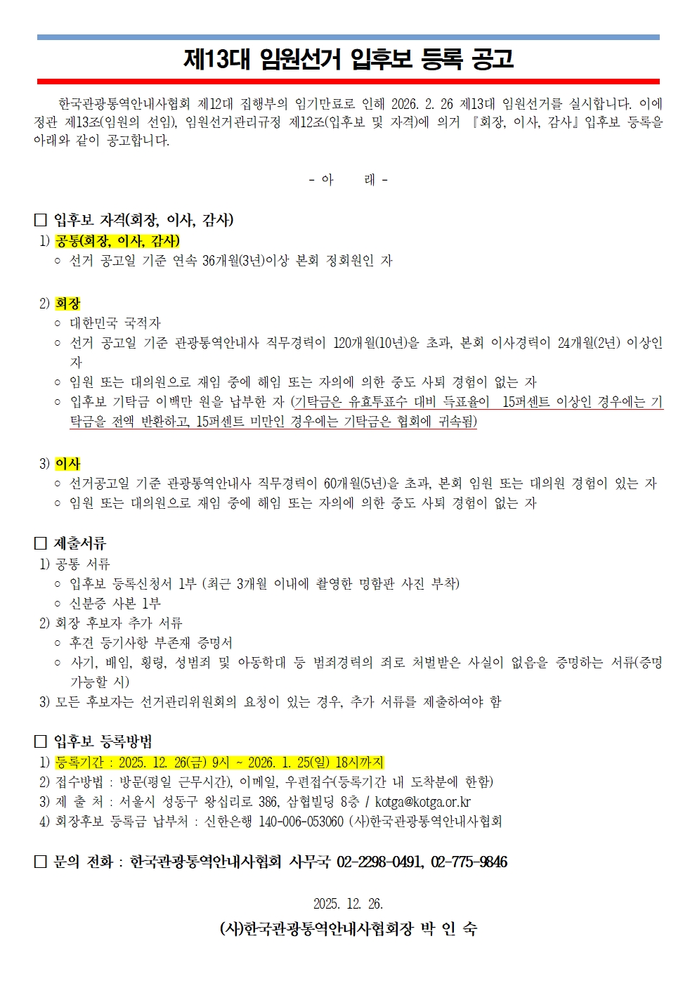 제13대 임원선거 입후보 등록 공고