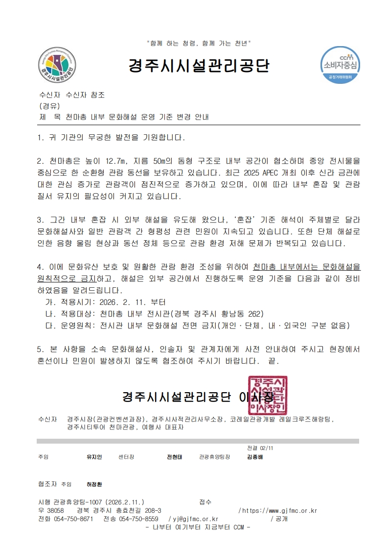 천마총 내부 문화해설 운영 기준 변경 안내
