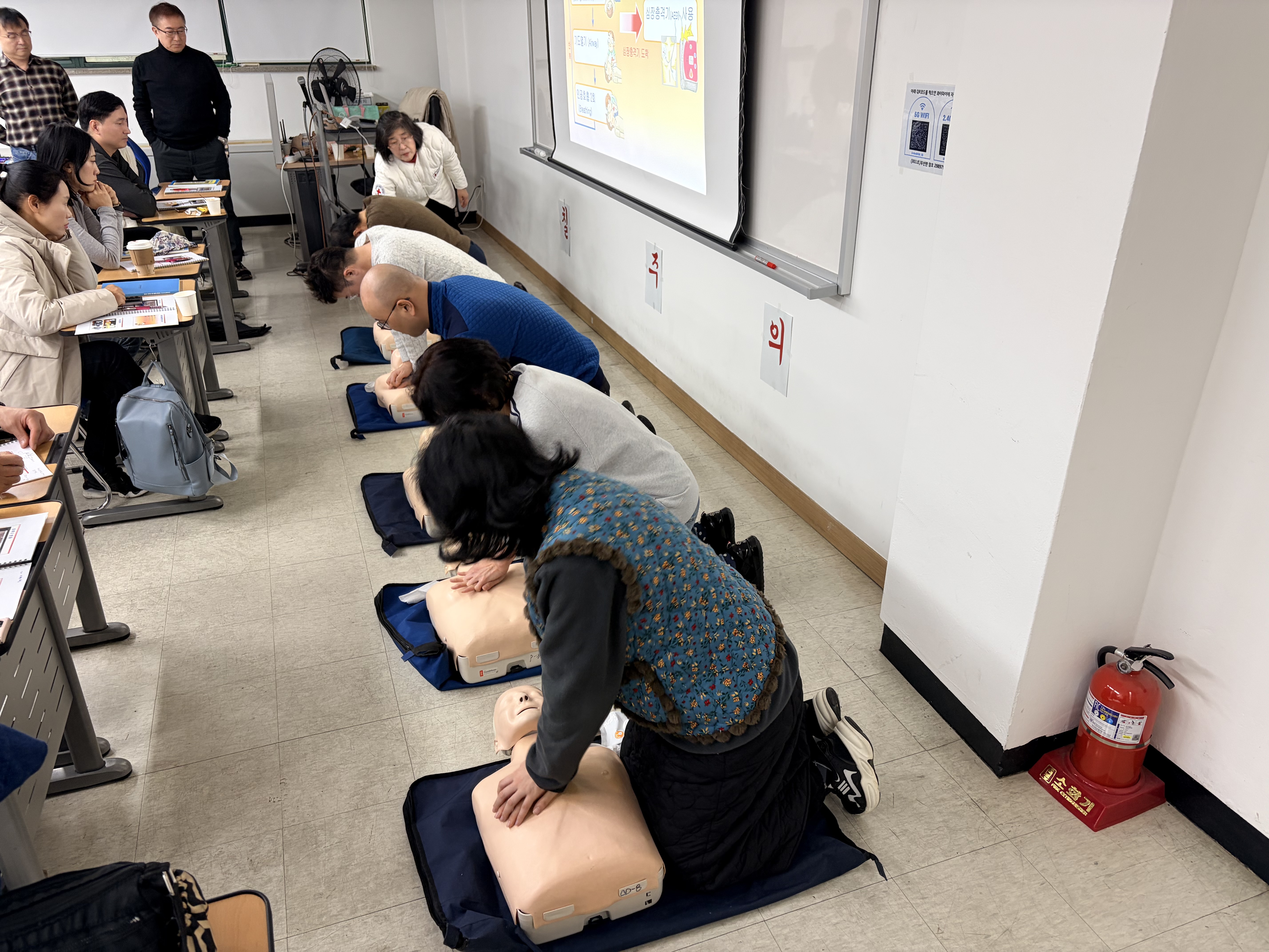 - 교육내용 : 위급상황 행동요령, 상처 처치법, 기도폐쇄 응급처치, 심폐소생술 등
