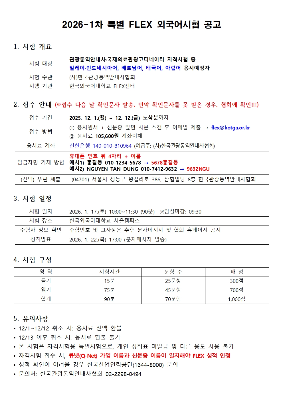 외국어시험 대체 불인정 또는 필기시험 무효 처리 등의 불이익이 발생할 수 있습니다.