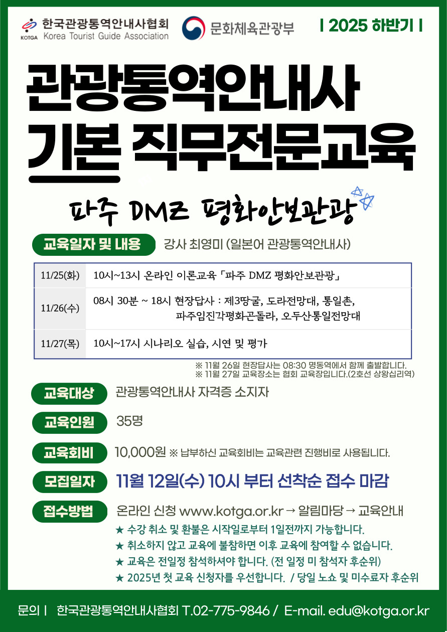 | 교육대상 | 관광통역안내사 자격증 소지자 |