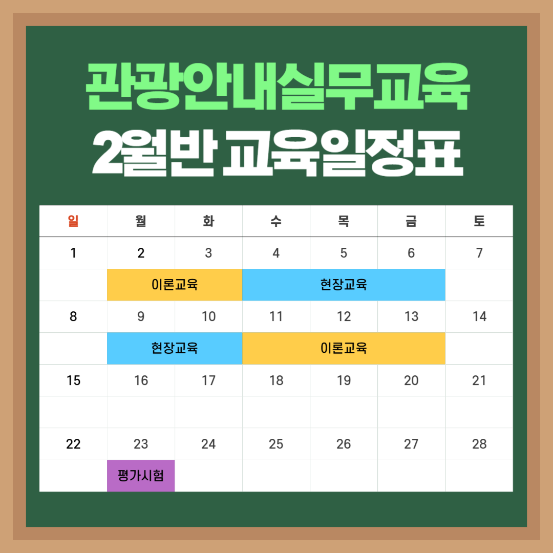 | 교육명 | 관광통역안내사 자격증대비반(26년 2월반-필기시험 2과목 면제) |